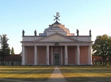 IESU CHRISTO / MAGNO PECCATORUM REDEMTORI HOC TEMPLUM CONSECRATUM EST / A MAGNO PECCATORE REDEMTO / DEI GRATIA FRIDERICO DUCE MEGAPOLITANO / AEDIFICARI COEPTUM ANNO MDCCLXV MENSE MARTIO / FINITUM ANNO MDCCLXX MENSE IULIO
